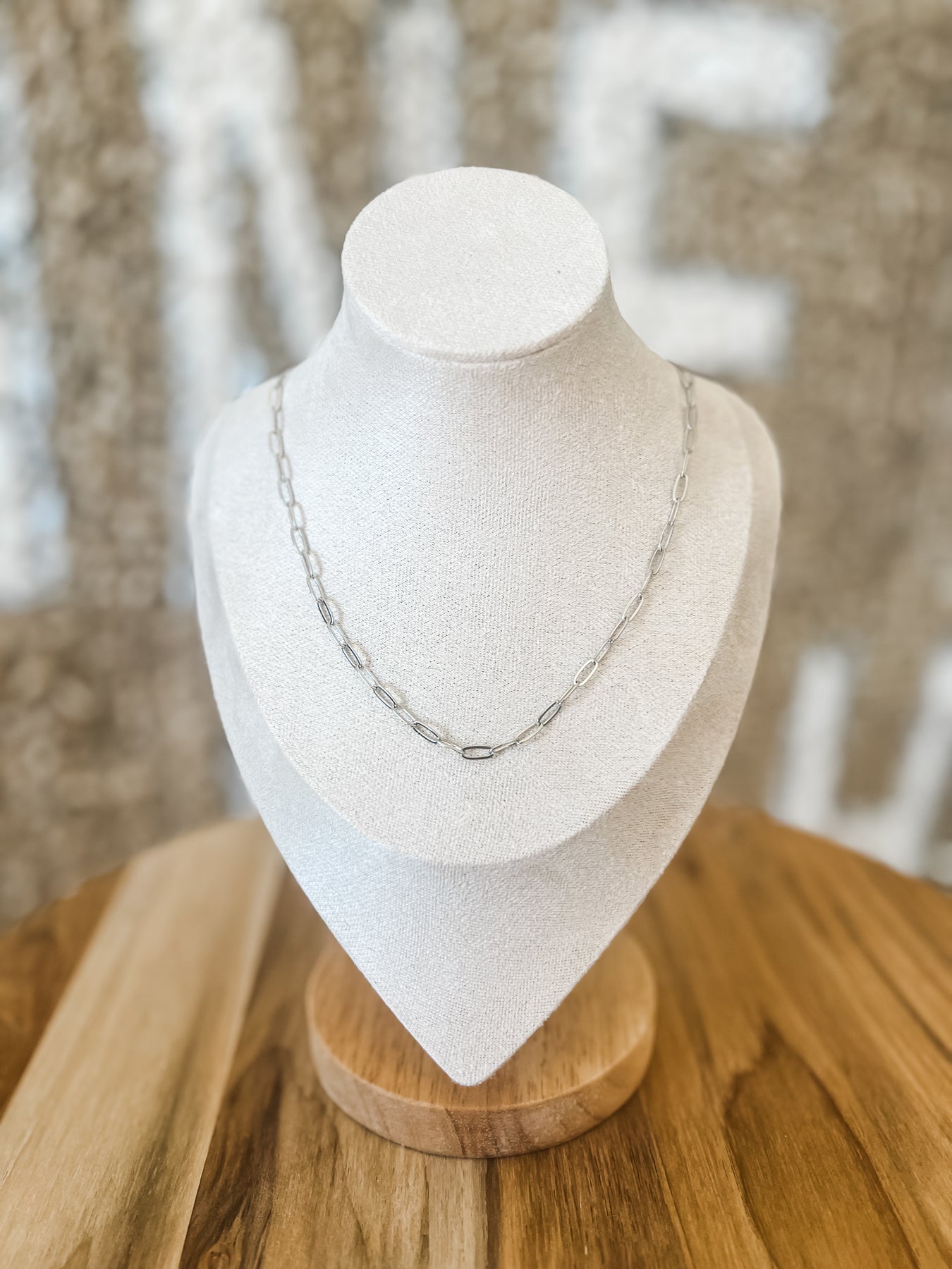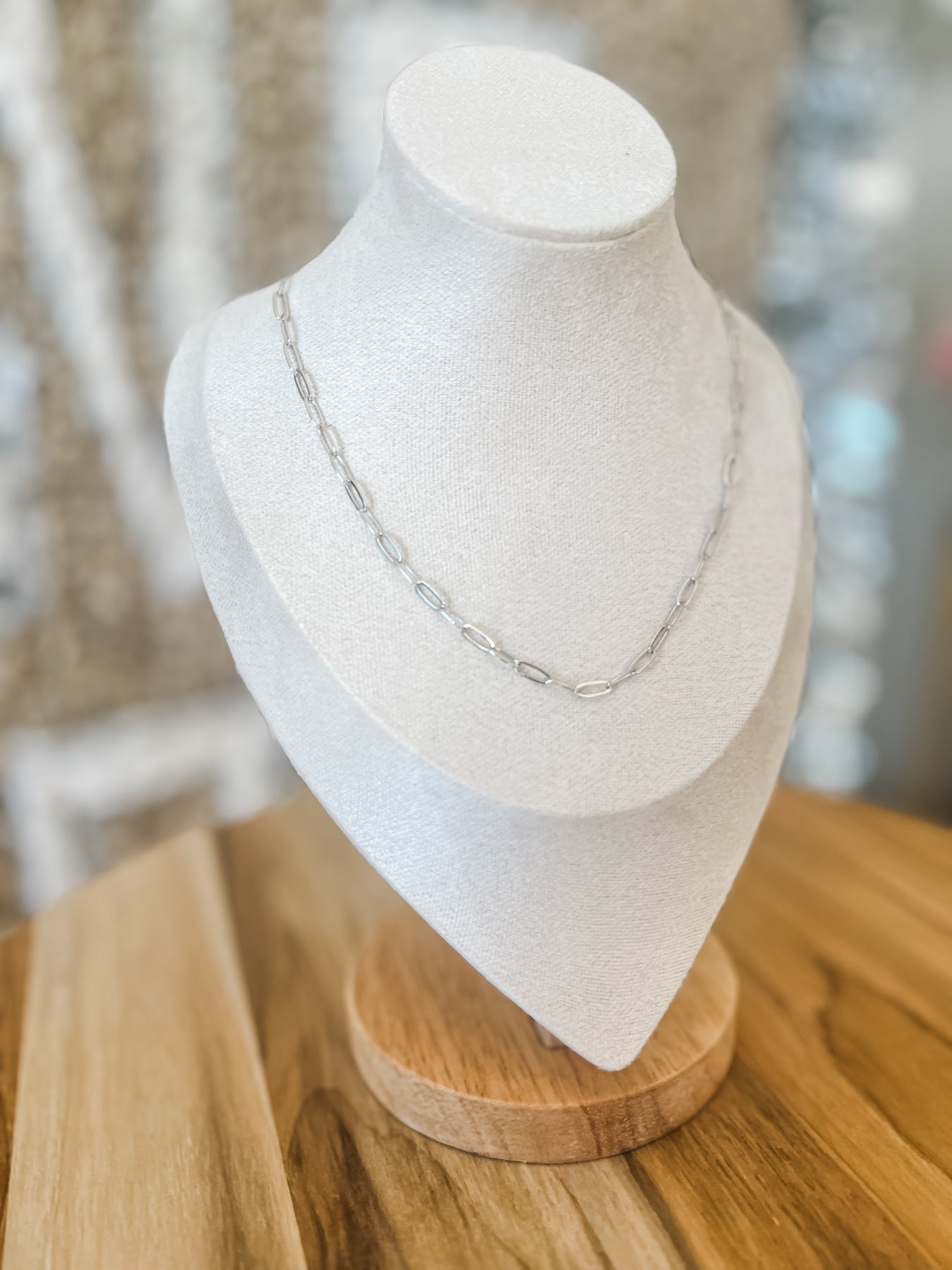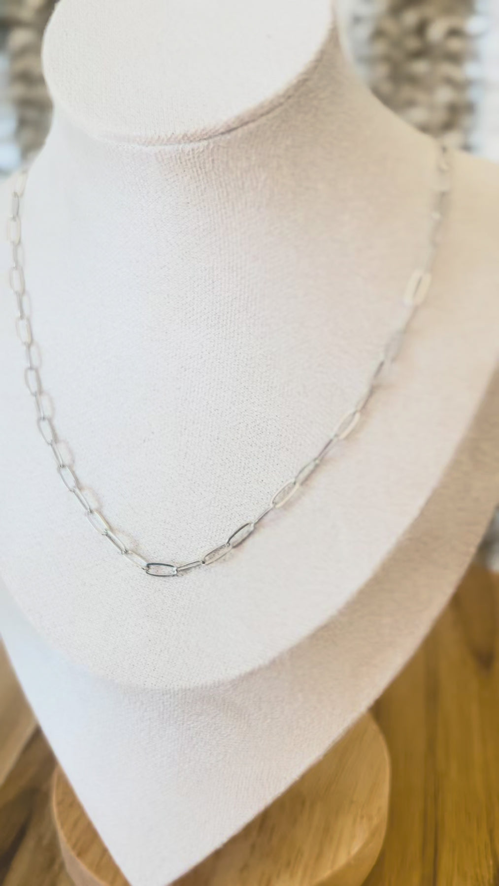 Sleek, simple, and endlessly versatile — the Silver Paperclip Chain is a must-have for effortless everyday style. Crafted from durable stainless steel, it shines beautifully whether worn solo, layered with your favorite pieces, or personalized with charms at our Charm Bar.
