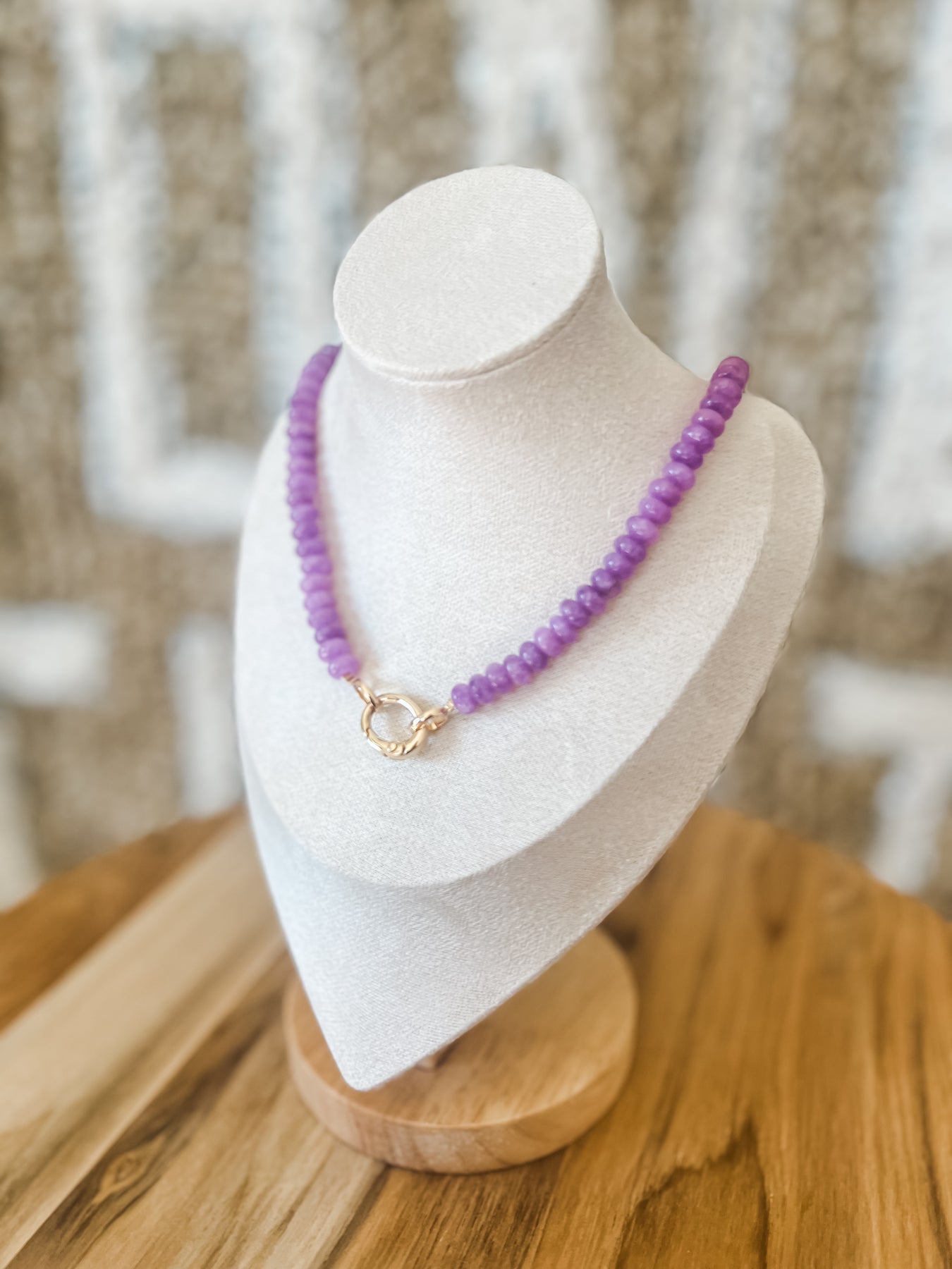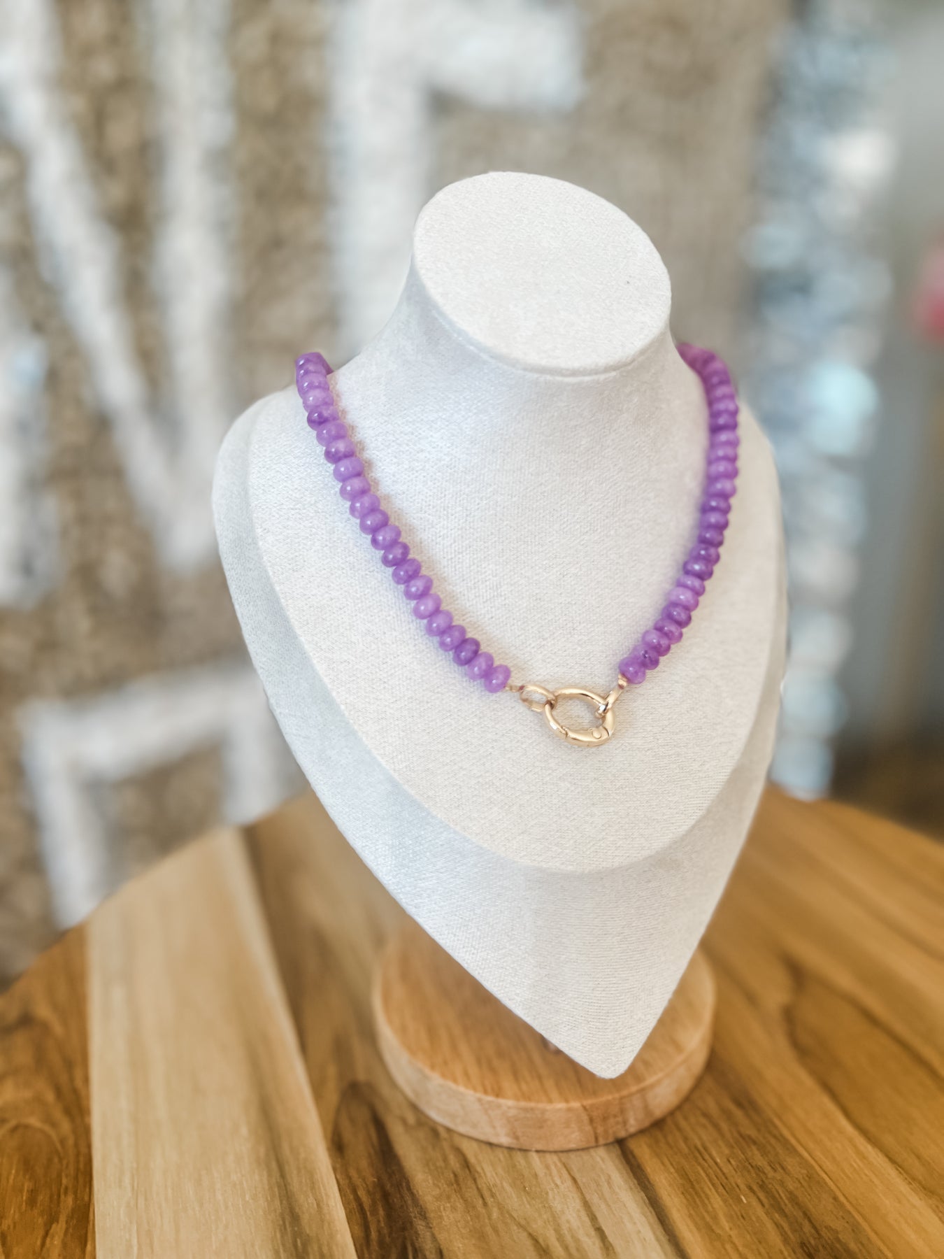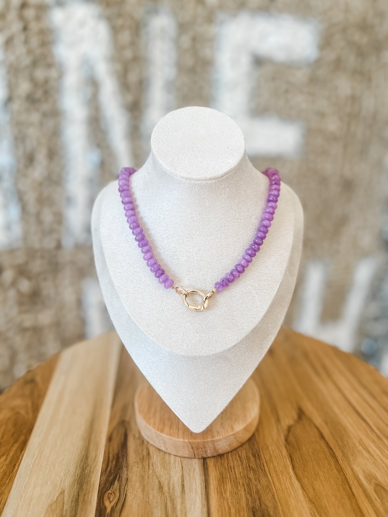 Chic, versatile, and designed to express your style — the Violet Glow Beaded Necklace features radiant purple beads and an interchangeable hook for easily swapping charms to match your mood or outfit. A statement piece on its own or the perfect base for your favorite charms.