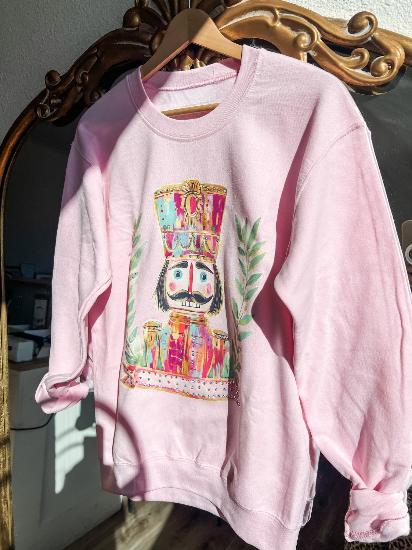 A festive favorite with a touch of sparkle. This unisex crewneck features a vibrant nutcracker design accented with rhinestones for the perfect holiday shine. Cozy, soft, and easy to style—your new go-to for all things merry.